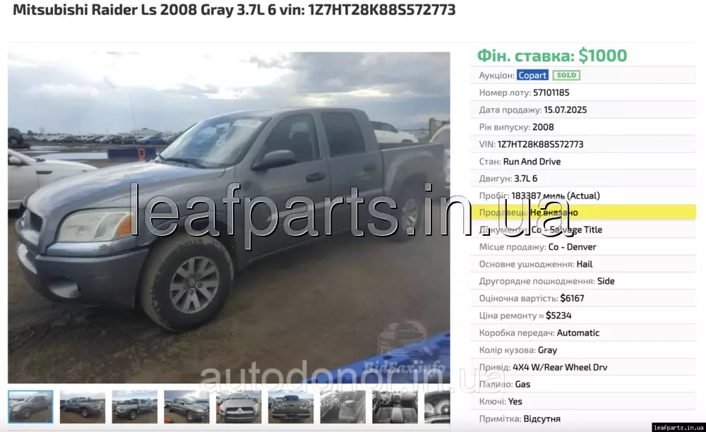 Автомобіль Mitsubishi Raider 2006-2009 Двигуни: 3.7L