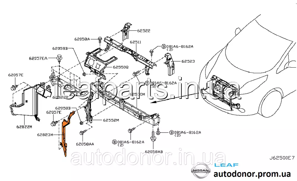 Дефлектор (захист) радіатора лівий Nissan Leaf ZE0 (10-12) 62823-3NA0A