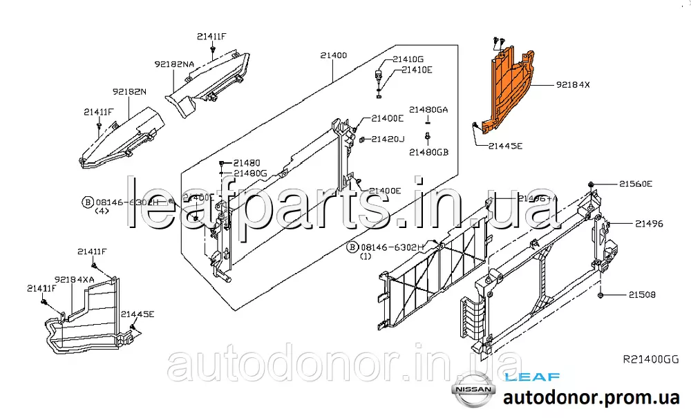 Дефлектор (захист) радіатора правий Nissan Leaf AZE0 (13-17) 92184-3NF0A