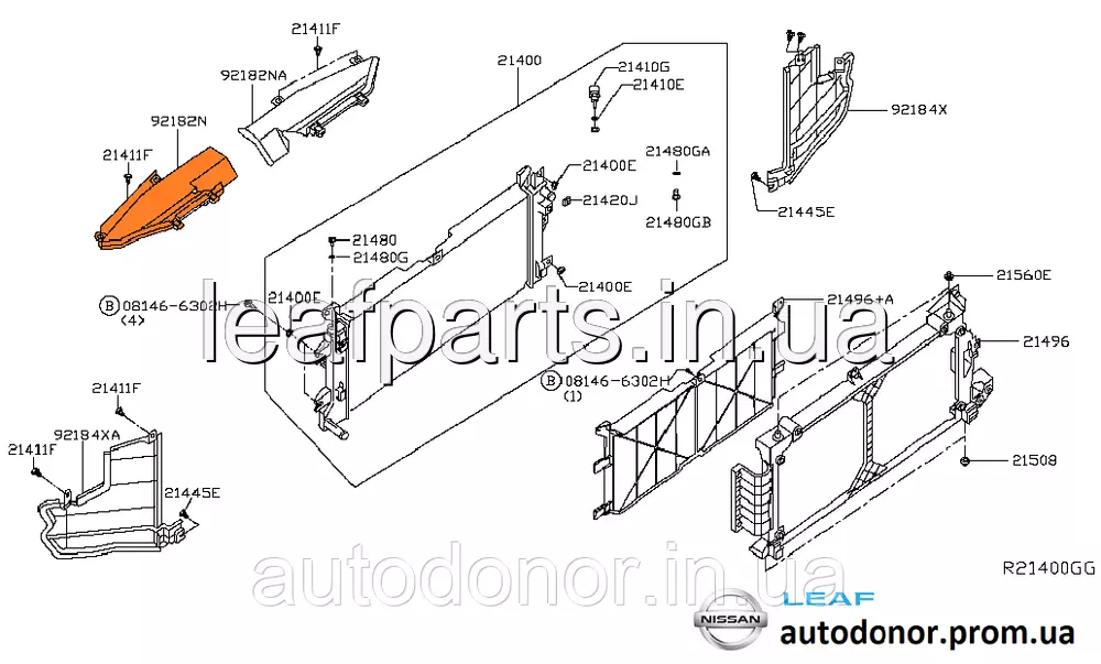 Дефлектор (захист) радіатора верхній лівий Nissan Leaf AZE0 (13-17) 92182-3NF0A
