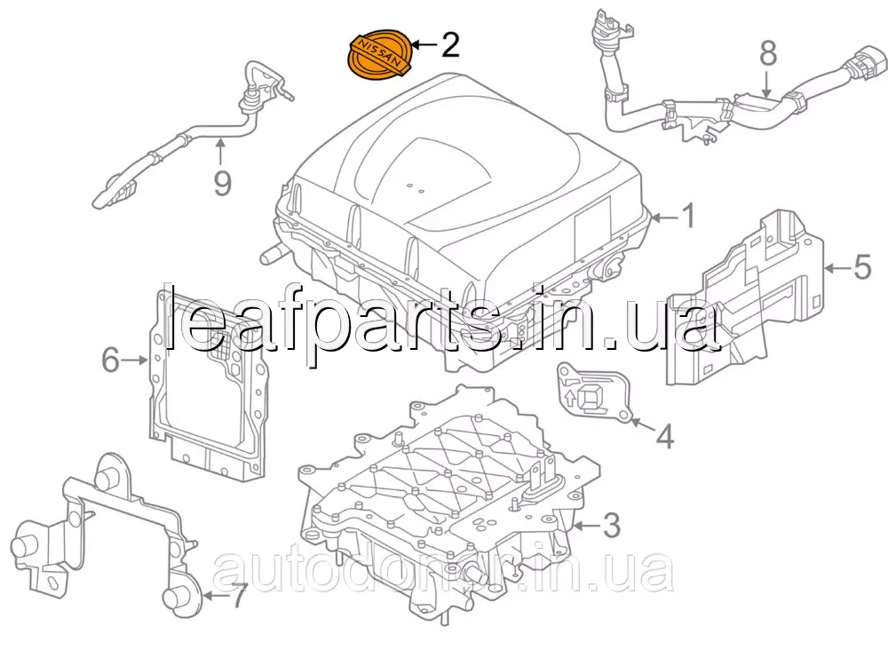 Емблема Nissan інвертора на Ніссан Ліф у кузові ЗетЕ0 і AZE0 з 2010