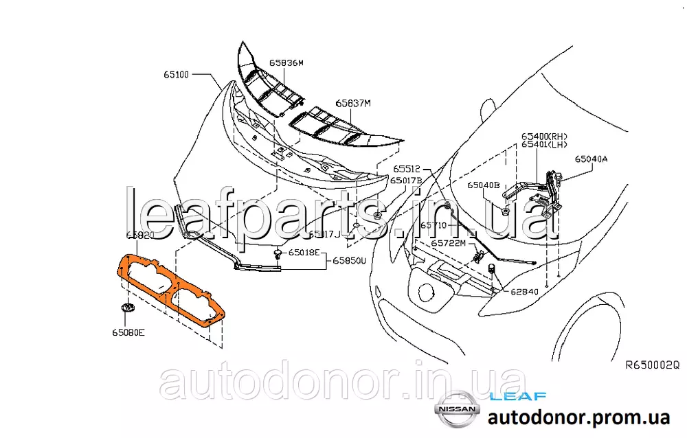 Ізоляція капота Nissan Leaf ZE0 / AZE0 (10-17) 65840-3NA0A