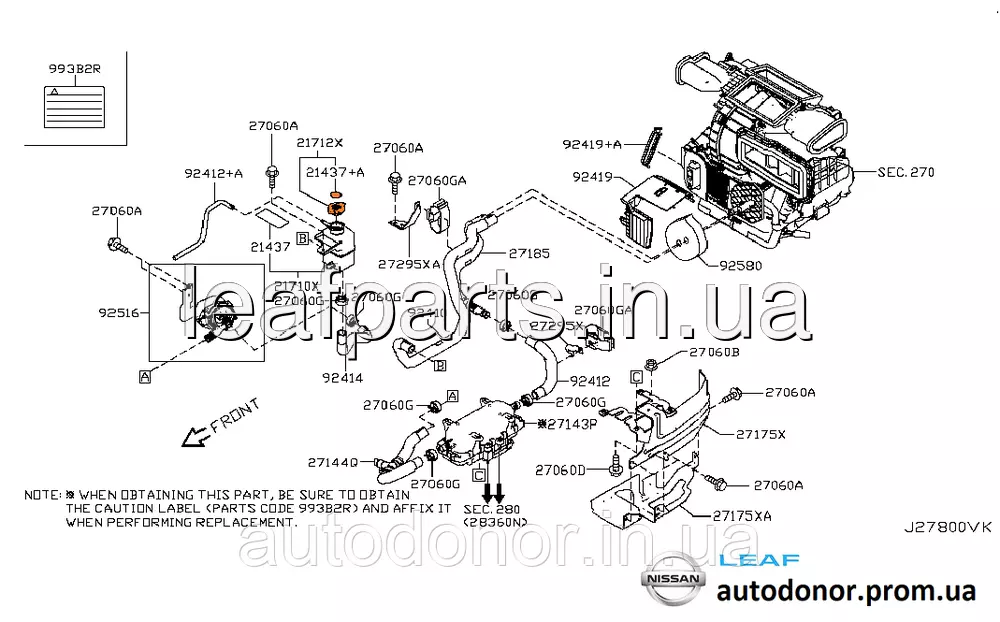 Кришка бачка розширювального печі та охолодження малого Nissan Leaf ZE0 (10-12) 21430-ZZ00A