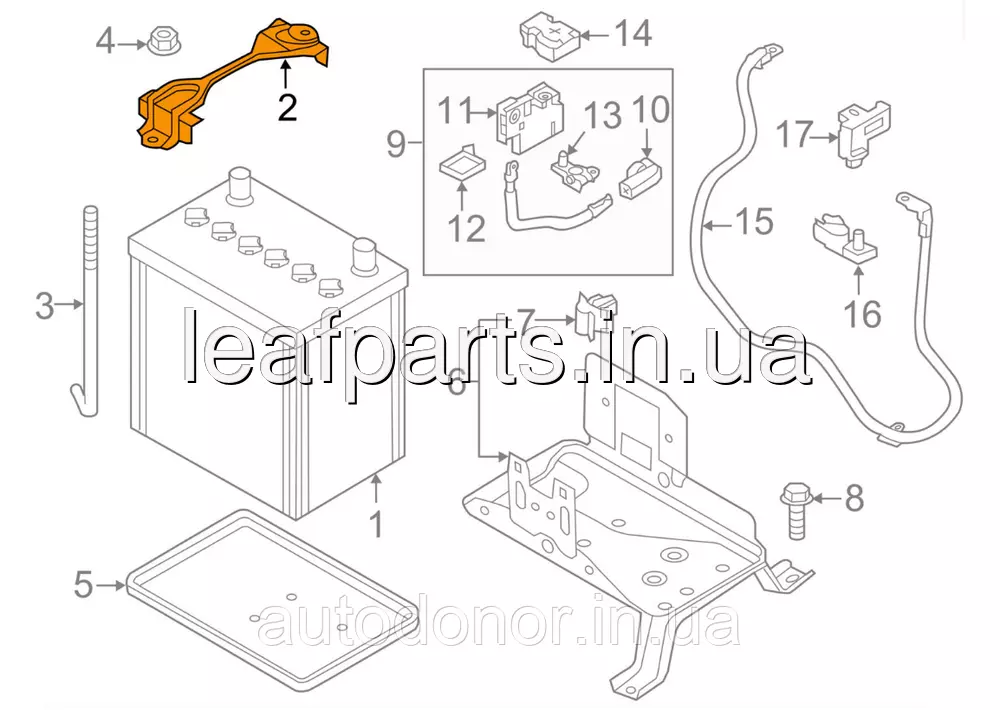 Кронштейн кріплення АКБ верхній на Ніссан Ліф в кузові ЗетЕ0 з 2010