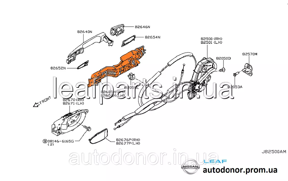 Механізм ручки дверей у зборі передній і задній лівий Nissan Leaf AZE0 / ZE1 (13-) 80611-3NF1A