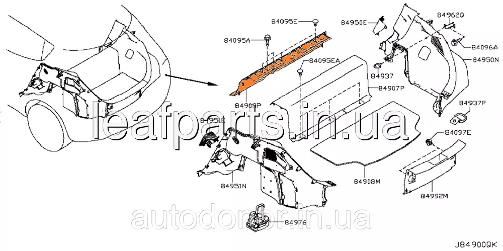 Накладка багажника передня нижня сіра K - GRAY Nissan Leaf ZE0 (10-12) 84909-3NA0A