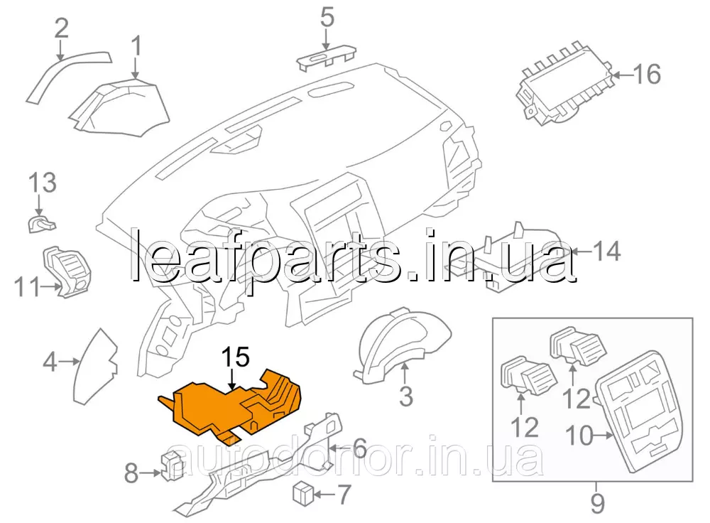 Накладка на торпедо нижня ліва водійська сіра на Ніссан Ліф в