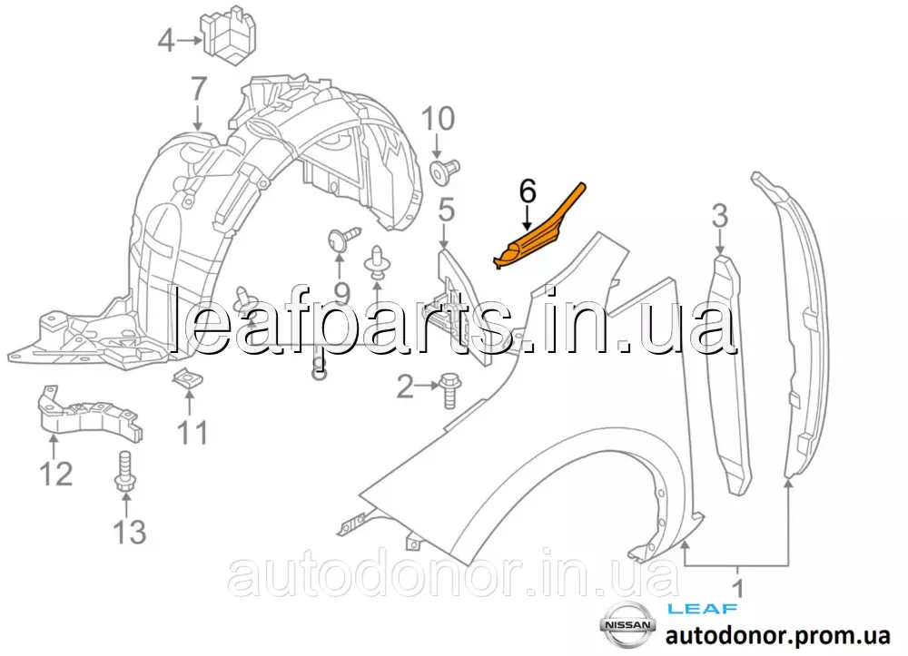 Накладка переднього правого крила верхня (водослив) Nissan Leaf ZE0 / AZE0 (10-17) 66894-3NA0A