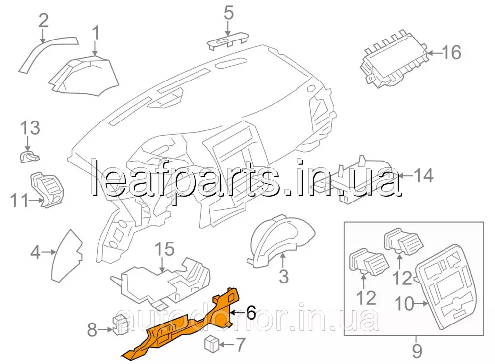 Накладка торпедо нижня чорна на Ніссан Ліф у кузові ЗетЕ0 з 2010 до