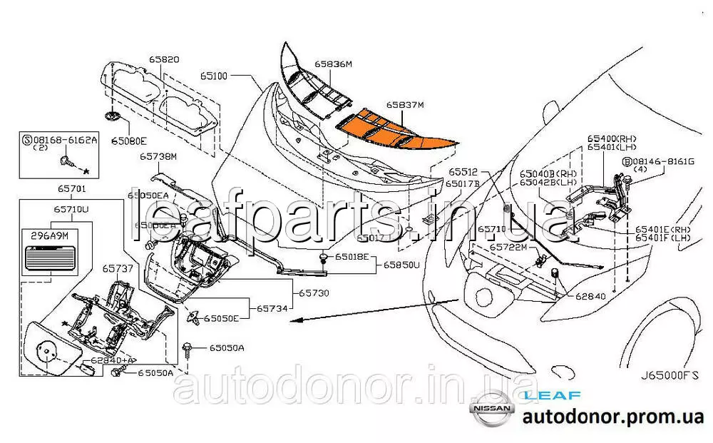 Накладка зябра капота ліва Nissan Leaf AZE0 (13-17) 65837-3NA1A