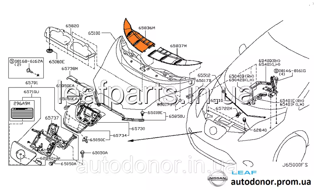 Накладка зябра капота права Nissan Leaf AZE0 (13-17) 65836-3NA1A