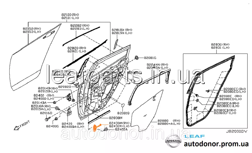 Обмежувач двері задній лівий Nissan Leaf ZE0 (10-12) 82431-3NA0A