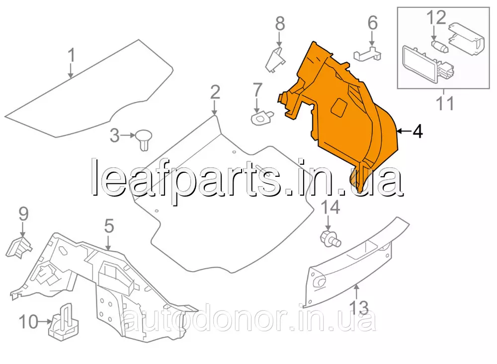 Обшивка арки багажника права чорна G - GRAY Nissan Leaf AZE0 (13-17) 84950-3NF0B