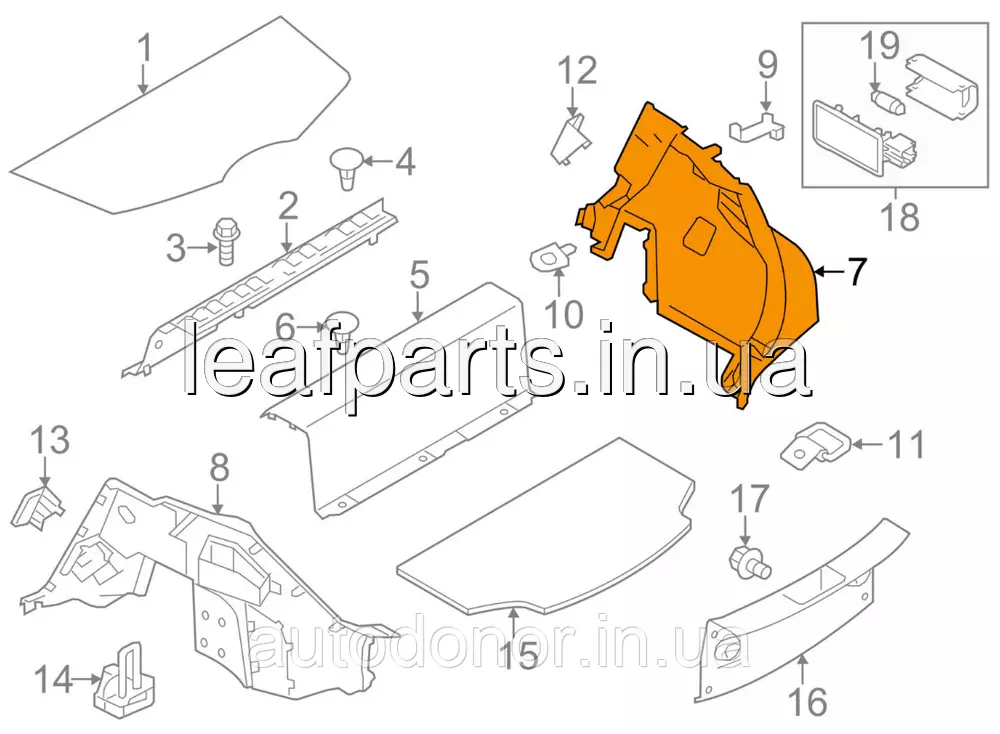 Накладка боковини багажника права Nissan Leaf