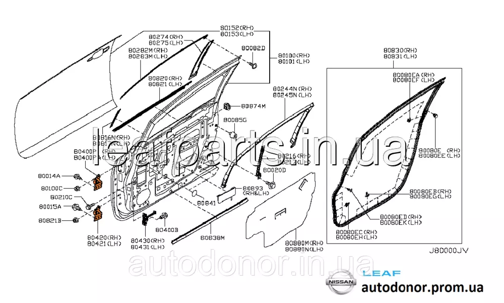 Завіса дверей передньої й задньої L нижня, передньої R верхня Nissan Leaf ZE0 / AZE0 / ZE1 (10-) 82421-3NA0A