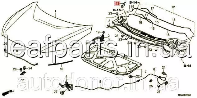 Накладка петлі капота ліва Honda FCX Clarity (17-) 60170-TRT-A00ZZ