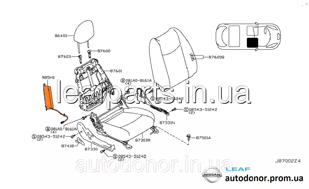 Подушка безпеки airbag сидіння права на Нісан Ліф у кузові ЗЕ0 і