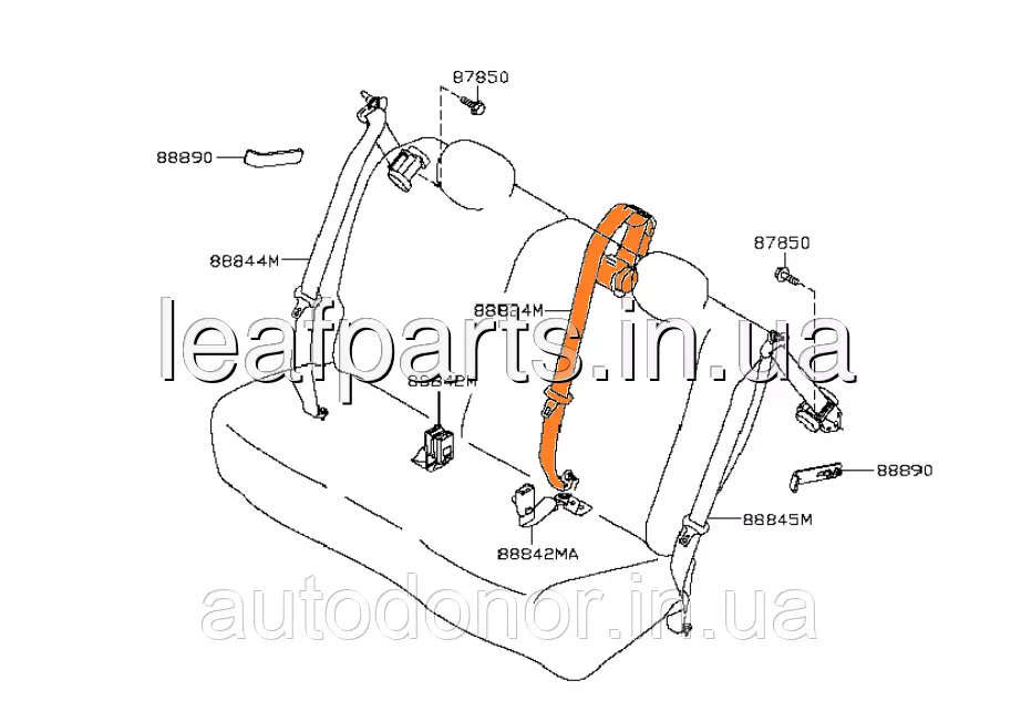 Ремінь безпеки задній центральний пасажирський на Ніссан Ліф в