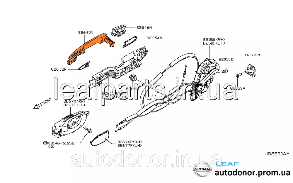 Ручка дверей зовнішня задня ліва та права Nissan Leaf ZE0/AZE0/ZE1 (10-), Mirano Z51, Teana 32 80640-1AA0A