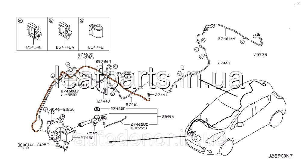 Шланг омивача переднього скла Nissan Leaf ZE0 / AZE0, Nissan Murano Z51 (10-17) B8940-89910