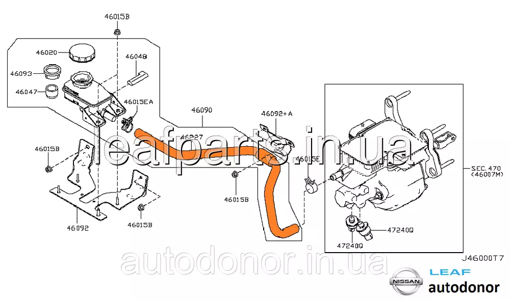 Шланг/патрубок бачка ГТЦ (головного гальмівного циліндра) Nissan Leaf ZE0 / AZE0 (10-17) 46227-3NA0A