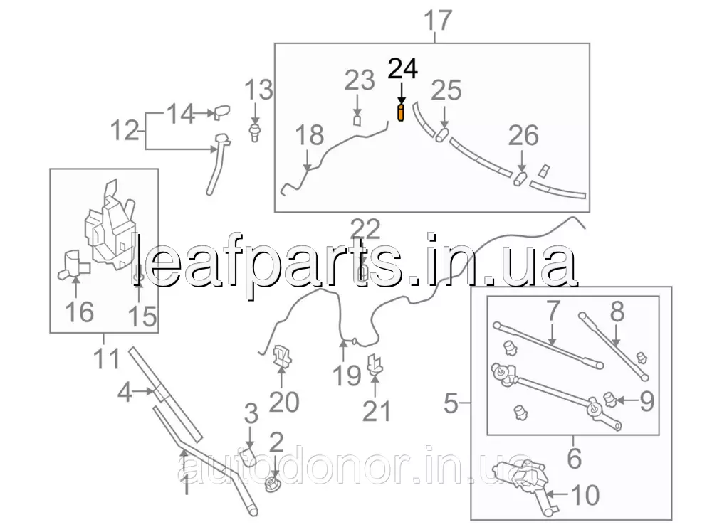 Штуцер/подовжувач шланга омивача переднього скла Nissan Leaf ZE0/AZE0 (10-17) 28937-AR000