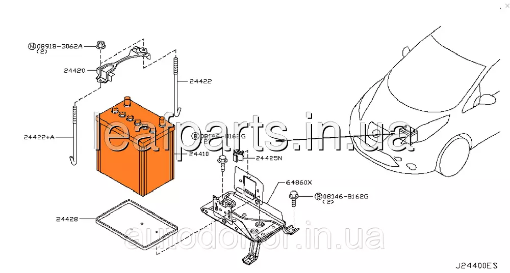 Батарея стартерна (акумулятор) Nissan Leaf ZE0 / AZE0 / ZE1 (10-) 2441044S7A