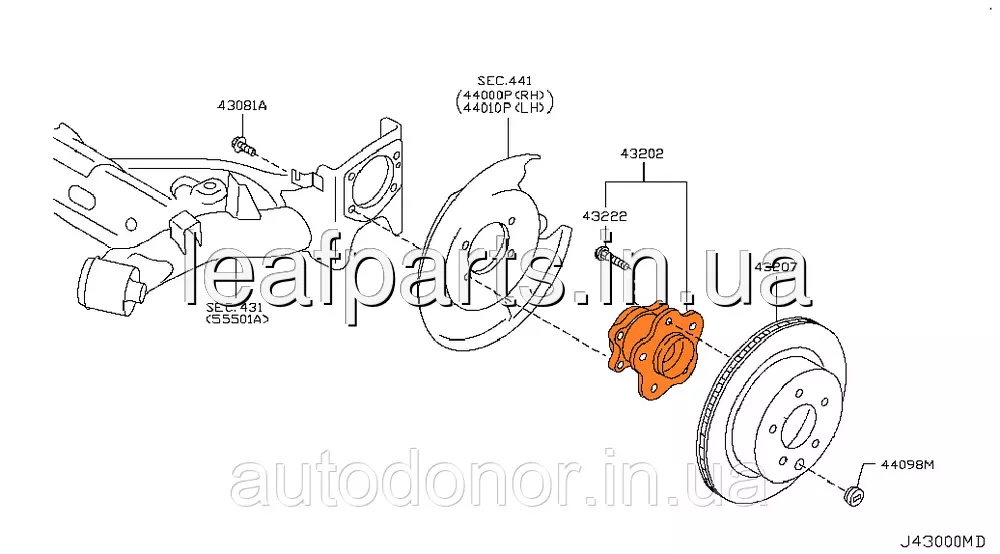 Ступица задняя на Ниссан Лиф в кузове ЗетЕ0 и АЗетЕ0 с 2010 года и