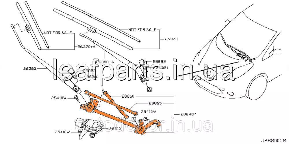 Трапеція двірників очисника передня Nissan Leaf ZE0 / AZE0 / ZE1 (10-) 28840-3NA0A / 28800-3NF0A
