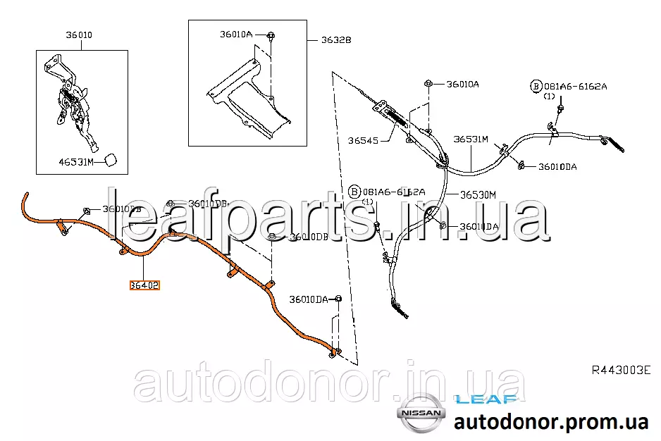 Трос педалі, важеля стоячного гальма Nissan Leaf AZE0 (13-17) 36402-3NF0A
