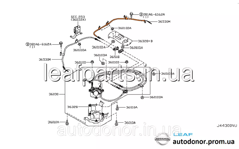 Трос гальма задній правий Nissan Leaf ZE0 (10-12) 36530-3NA0A