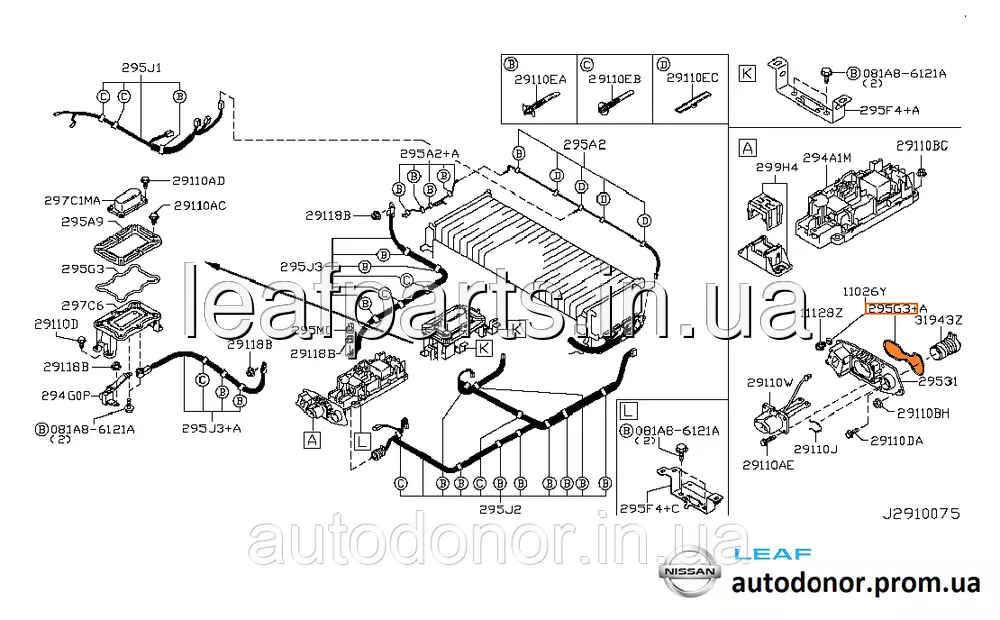 Конструктивні номери ущільнювач основа з'єднувача батареї — 295G33NA0B, 295G33NF0B, 295G3-3NA0B, 295G3-3NF0B