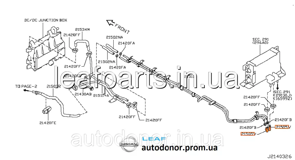 Випускний шланг (патрубок) перетворювача Nissan Leaf ZE0 (10-12) 21505-3NA0D