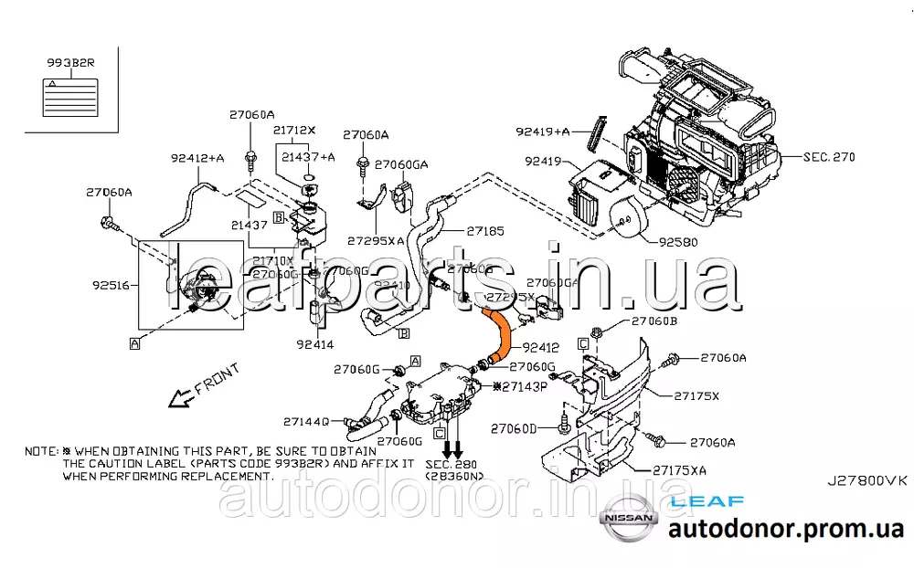 Патрубок печки Nissan Leaf