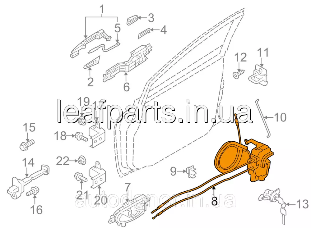 Замок дверей передній правий Nissan Leaf AZE0 (13-17) 80500-3NF0A
